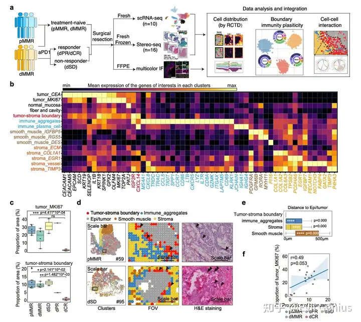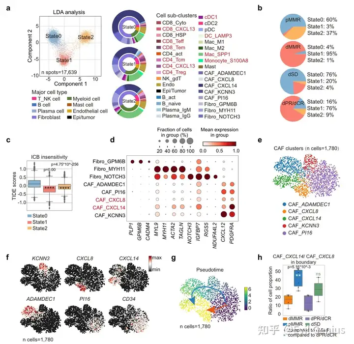 细胞定义 fibroblasts (COL1A1) epi/tumor cells (KRT18, EPCAM) endothelial cells (PECAM1) Among immune cells, categorized T cells into 10 subclusters, including CD4_CXCL13(CXCL13+CD4+T cells), CD4_Tcm (central memory CD4+T cell),CD4_Treg (regulatory CD4+T cell), CD8_Tcyto (cytolytic CD8+T cell),CD8_Teff(effector CD8+T cell), CD8_Tem (effector memory CD8+Tcell), CD8_CXCL13 (CXCL13+CD8+T cells). myeloid cells into 8 clusters covering cDC1 (conventional dendritic cell 1), cDC2, plasmacytoid DC (pDC), DC_LAMP3 (LAMP3+ DC), Mac_M1 and Mac_M2 (M1 and M2-like macrophage), Mac_SPP1 (SPP1+ macrophage), monocyte_S100A8 (S100A8+ monocyte) and mast cell