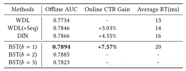 从实验结果上看,BST在离线和在线任务中都取得了最好的结果