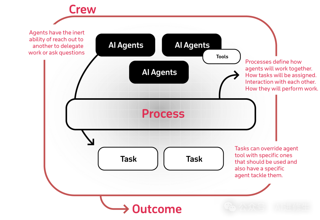 该框架使代理能够通过角色扮演无缝协作和协同工作。可以将其视为协调一支高效、有凝聚力的 AI 代理团队,每个代理都有自己独特的角色和目标。所以 Crew AI 就是让一群 AI 代理像一个团队一样协同工作。