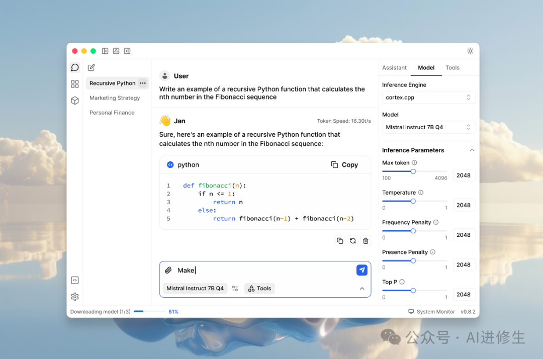 Jan 的主要功能之一是支持本地运行 AI 模型,如 Llama 或 Mistral,这样可以提高隐私性,不需要互联网连接。如果你需要讨论敏感内容,本地运行模型更为安全。例如,在需要保密的项目中,Jan 的本地模型功能可以确保对话的私密性和安全性。