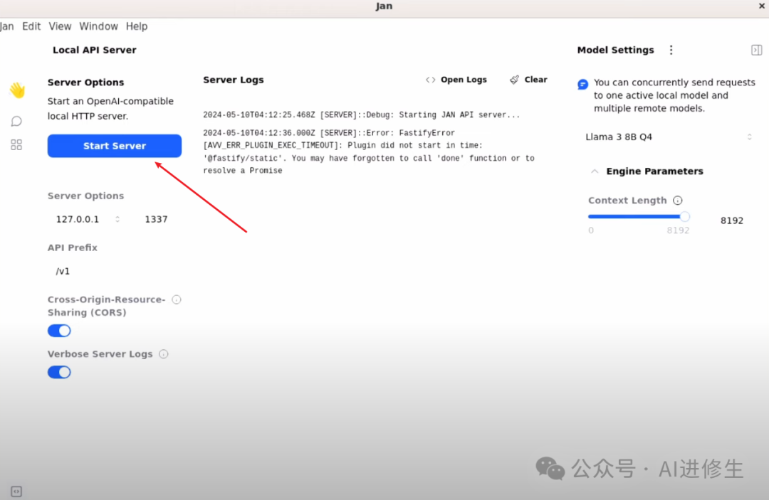 你可以创建新线程,安装更多模型,查看哪些模型适合你的系统。通过粘贴 Hugging Face 链接来设置模型也很方便。Jan 提供了本地 API 服务器,可以通过它公开模型的 API 端点并检查日志,还可以更改 API 端点 URL。