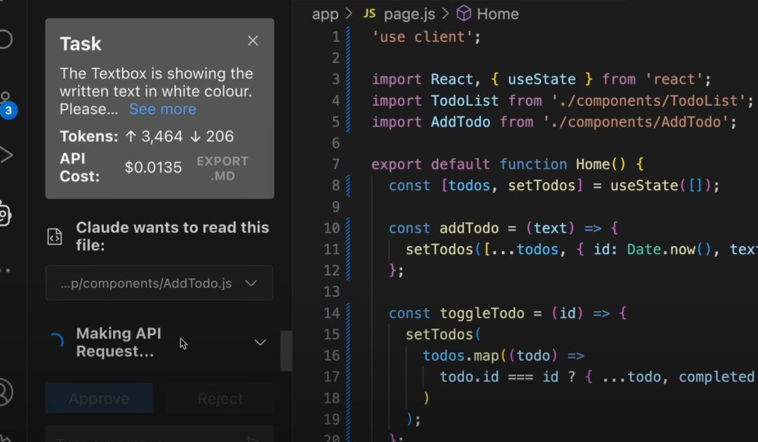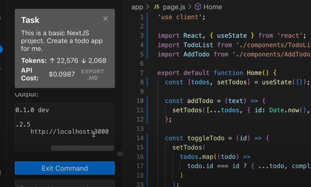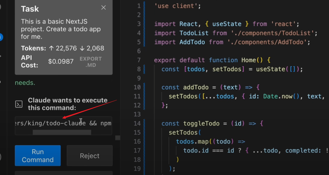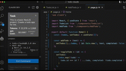 让我们先创建一个Next.js项目并在VS Code中打开它。现在打开Claude Dev,要求它制作一个待办事项应用。
