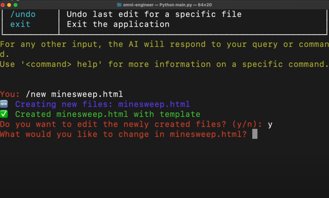 它在询问我们要对它做什么。让我们让它使用 HTML、CSS 和 JS 来制作一个扫雷游戏。