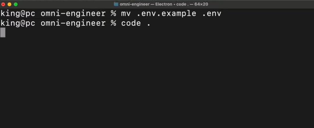 这将安装依赖项。完成后,将 EnV 示例文件重命名为 EnV。