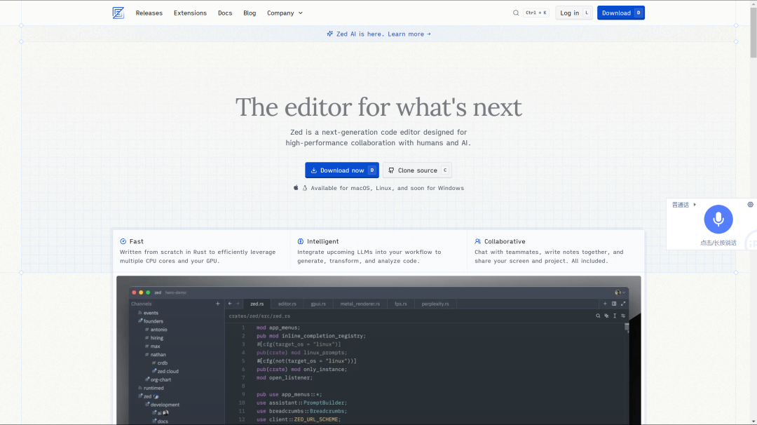 以想法生成的速度编写代码 – Zed 是一款高性能、多人代码编辑器。