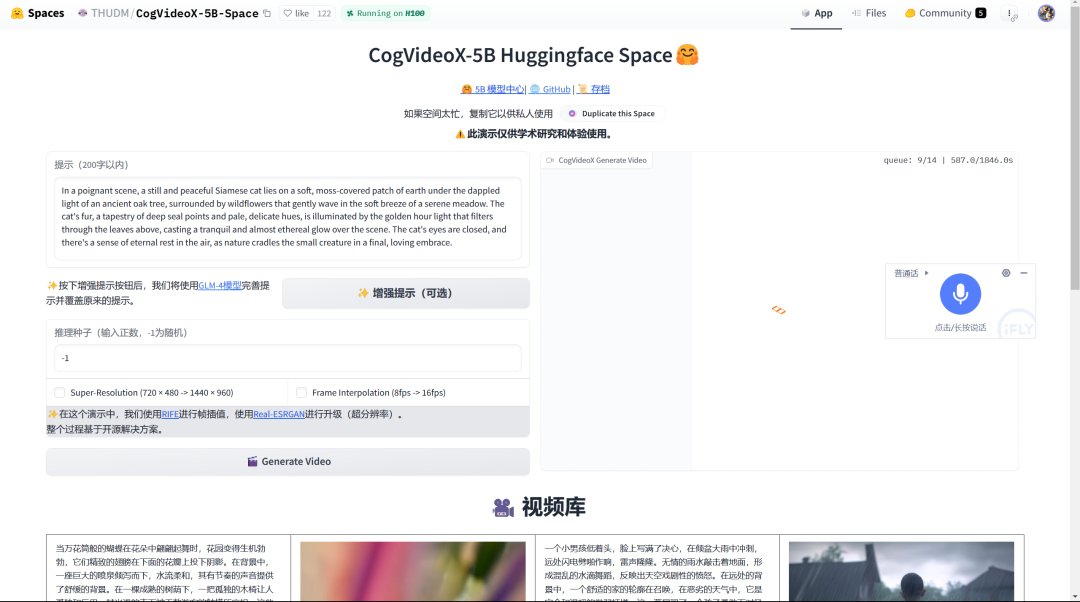 参考链接: [2] huggingface:https://huggingface.co/THUDM/CogVideoX-5b/