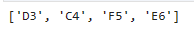 # 假设现在黑棋下棋,可以落子的位置有:['D3', 'C4', 'F5', 'E6'],
