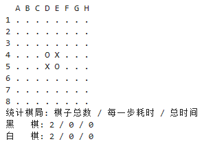 棋盘规格是 8x8,'X' 代表黑棋,'O' 代表白棋,'.' 代表未落子状态。