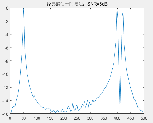 由图可以看出,四种不同的谱估计方法在SNB=-5dB皆可以有效的估计出功率谱,能够清晰的区分相近频率。那么接下来将不断减小信噪比 SNR,比较功率谱估计情况。