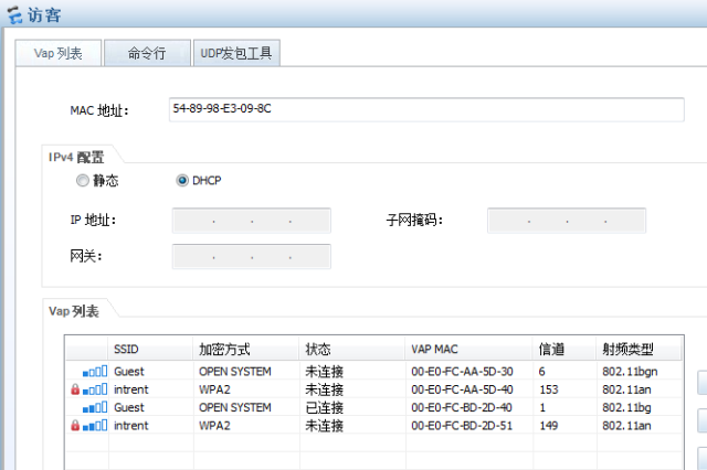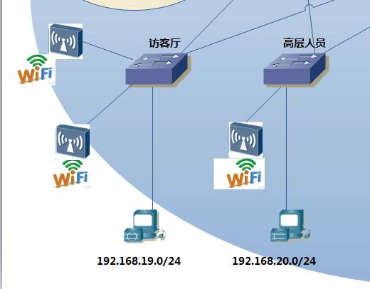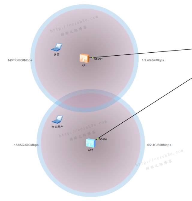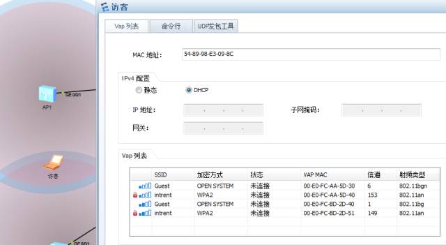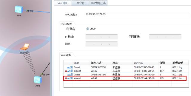 这样就可以实现二层漫游与三层漫游的效果,在访客厅的2个ap之间漫游属于二层漫游,而与高层人员下面的AP则是三层漫游。