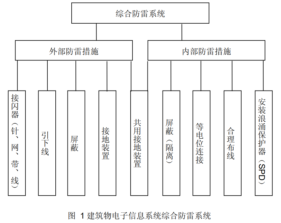 根据国家标准 GB50343-2004《建筑物电子信息系统防雷技术规范》,建筑物电子信息系统应采用外部防雷和内部防雷等措施进行综合防护。如下图所示: