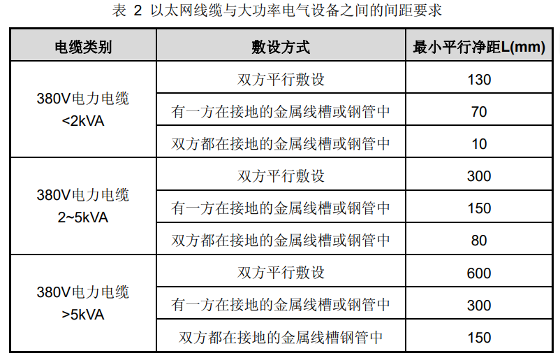 )注意:上述最小净距要求是指未使用金属线槽时的要求。如局部要求不能满足,可考虑采用增加钢管或金属线槽进行屏蔽的方法解决。