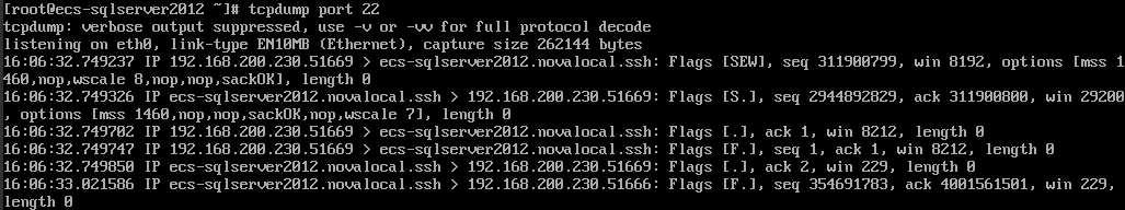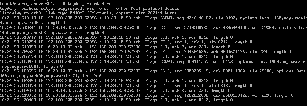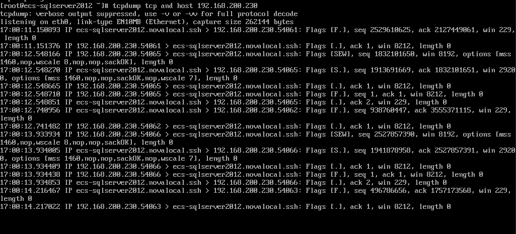 tcpdump tcp and src 192.168.200.230 and port 22 -nn①