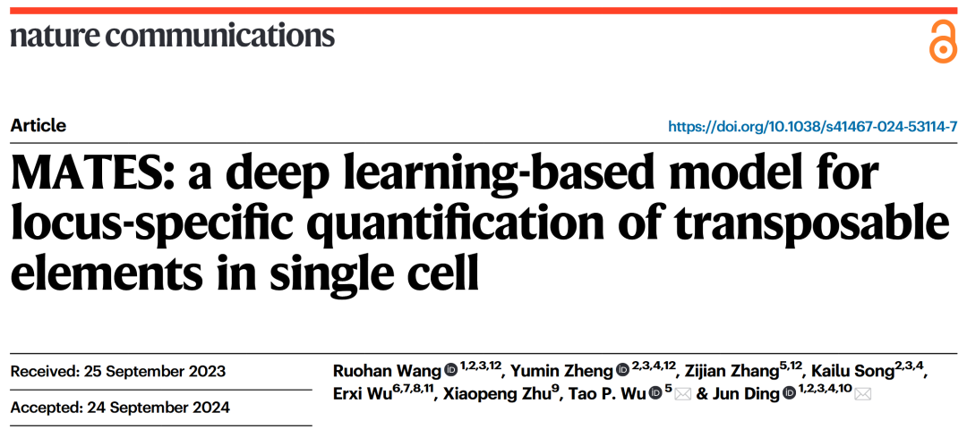 Wang, R., Zheng, Y., Zhang, Z., Song, K., Wu, E., Zhu, X., ... & Ding, J. (2024). MATES: a deep learning-based model for locus-specific quantification of transposable elements in single cell. Nature Communications, 15(1), 8798.