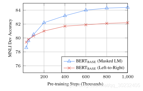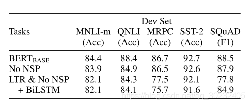 从图上的实验效果可以看出,使用MLM的模型会比LTR模型的效果要好很多。这侧面证实了MLM可以让模型保持双向的上下文内容的学习。