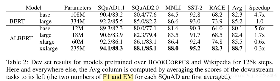 使用了BOOKCORPUS (Zhu et al., 2015) and English Wikipedia数据用来作为原始测词典。限制了最大句子长度为512。同时也使用了MLM预测任务和SOP任务。