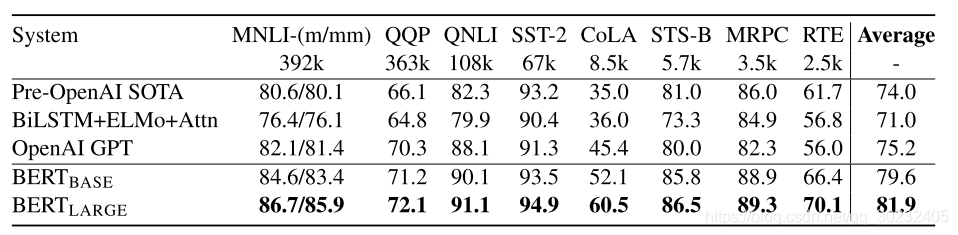 上面可以看出,对比几个模型,BERT的效果都大于现有的模型