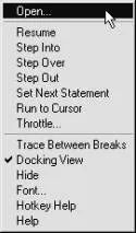 每个调试窗口都有不同的右键菜单,上面的选项与窗口上下文相关。因此,它们也被称为 "上下文菜单"。