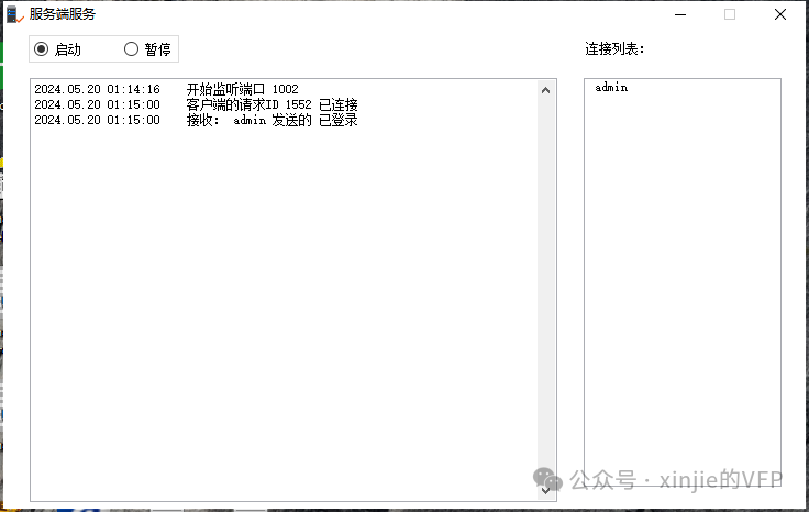 参数开启的状态下,在服务器端可以运行一个常规的可执行文件:SoftServer.exe,当然,如果你愿意,可以把它变成“WIN服务”(如果留心,本公众号已经指明了一些线索。当然,坐等,我也不会让你失望)。下图是当有用户登录系统时的状态: