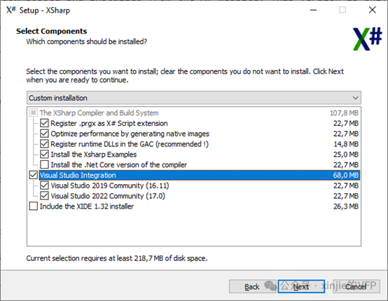 也可以在不集成 Visual Studio 的情况下安装 X#。不选择 GAC 选项意味着XSharp 程序集仅被复制到安装目录中。