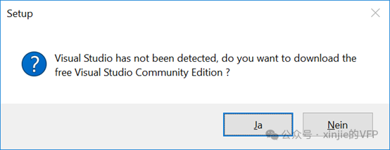 如果你在安装 X# 前忘记安装Visual Studio,安装程序会询问是否要为你下载(我得承认我还没试过这个选项)。