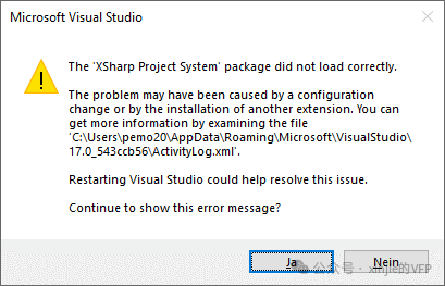 我不知道这种情况是否只发生在我身上(当时 X# 论坛上没有其他错误报告),但我在安装 Visual Studio Extension for Cahors 2.13(例如)和 Visual Studio 2022 时遇到了一些麻烦。设置完成后没有出现任何错误,但X# 扩展却没有安装,因此我无法加载任何 Xsproj 项目文件--结果是出现了一条不友好的错误信息。长话短说,虽然我没能找到问题的根源,但最终还是通过直接安装X# 扩展并在解决方案资源管理器中重新加载 X# 项目激活了扩展。