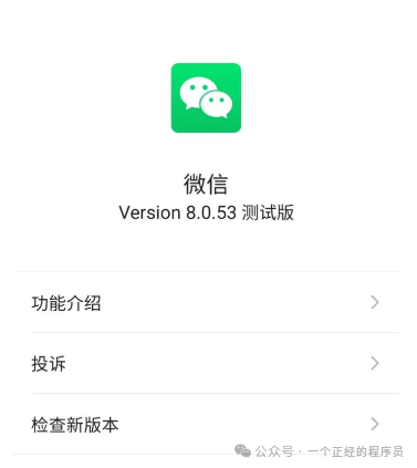 目前安卓版微信8.0.53为内测版本,正式版还没上线,如需体验微信内测版8.0.53,在 #公众号:一个正经的程序员 主页发送:微信内测 关键词,即可下载体验微信内测版本。