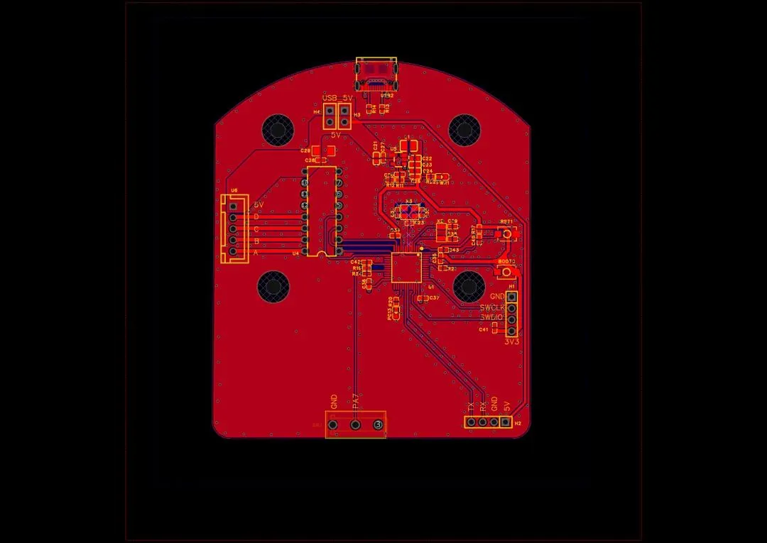 本项目由以下部分组成,底部盖子、主体(含电路板)、顶部盖子、旋转台。