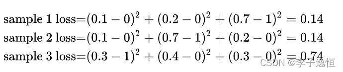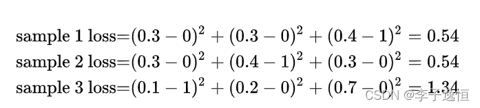 现在我们利用这个表达式计算上面例子中的损失函数值: