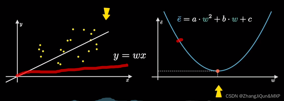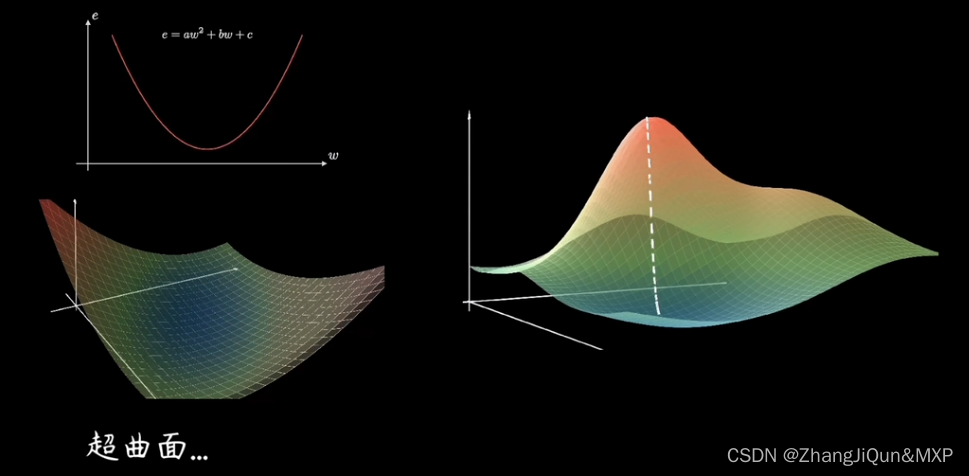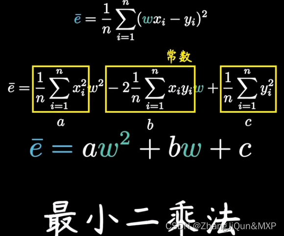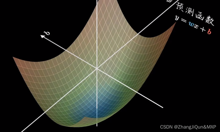 最后,将假设函数带入上述损失函数就会得到一个关于 w 与 b 的损失函数(loss),如下所示: