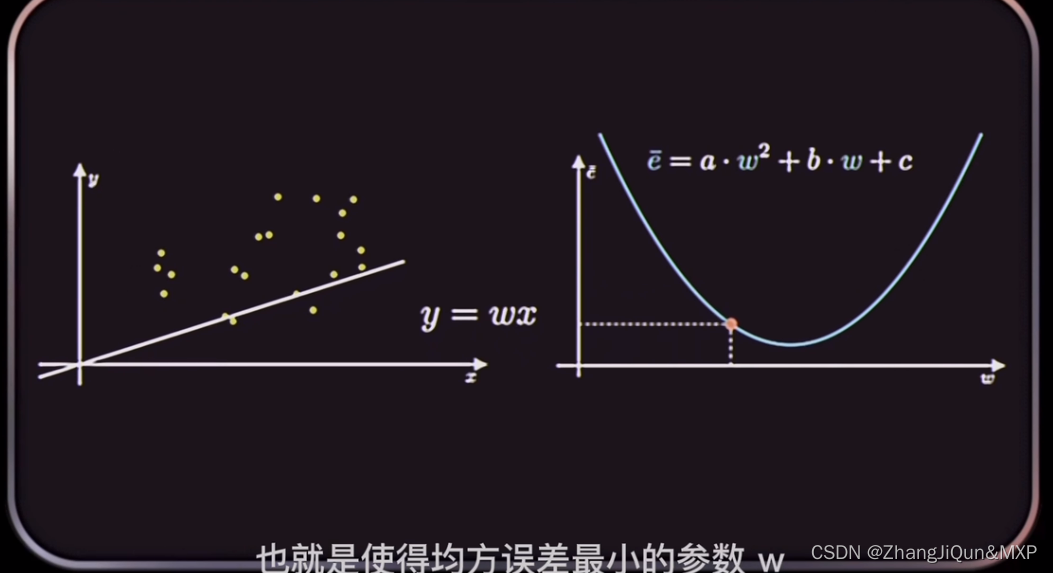 在机器学习中使用损失函数的目的,是为了使用“优化方法”来求得最小的损失值,这样才能使预测值最逼近真实值。 在上述函数中 n、Y、X1 都是已知的,因此只需找到一组 w 与 b 使得上述函数取得最小值即可,这就转变成了数学上二次函数求极值的问题,而这个求极值的过程也就我们所说的“优化方法”。