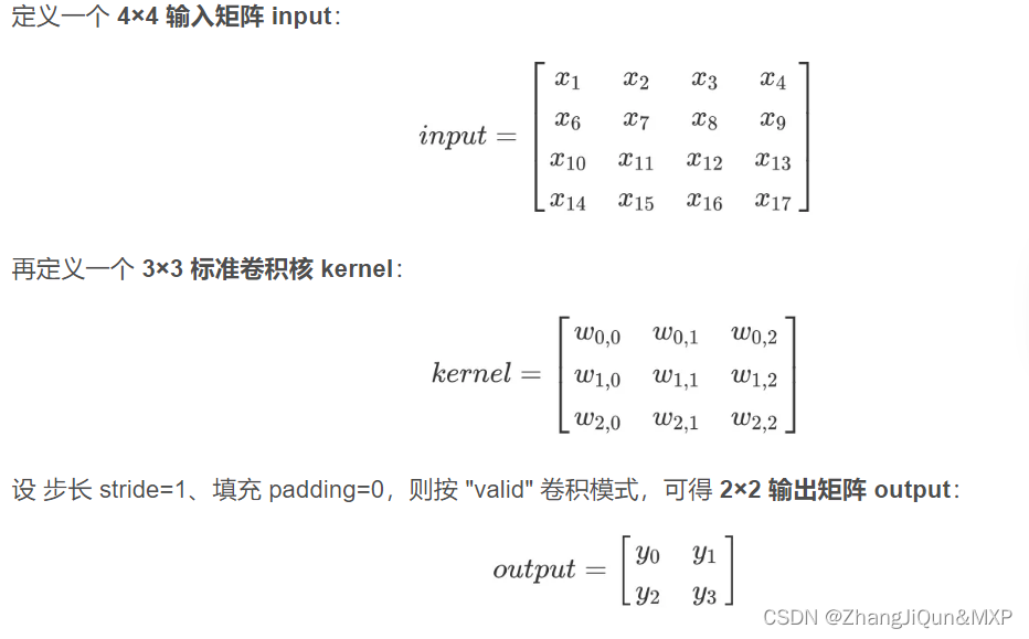 标准卷积的运算操作 其实是对卷积核中的元素 与输入矩阵上对应位置的元素 进行逐像素的乘积并求和。然后,卷积核在输入矩阵上以步长为单位进行滑动,直到遍历完输入矩阵的所有位置。