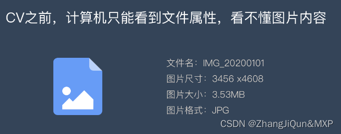 一张图片对于机器只是一个文件。机器并不知道图片里的内容到底是什么,只知道这张图片是什么尺寸,多少MB,什么格式的。
