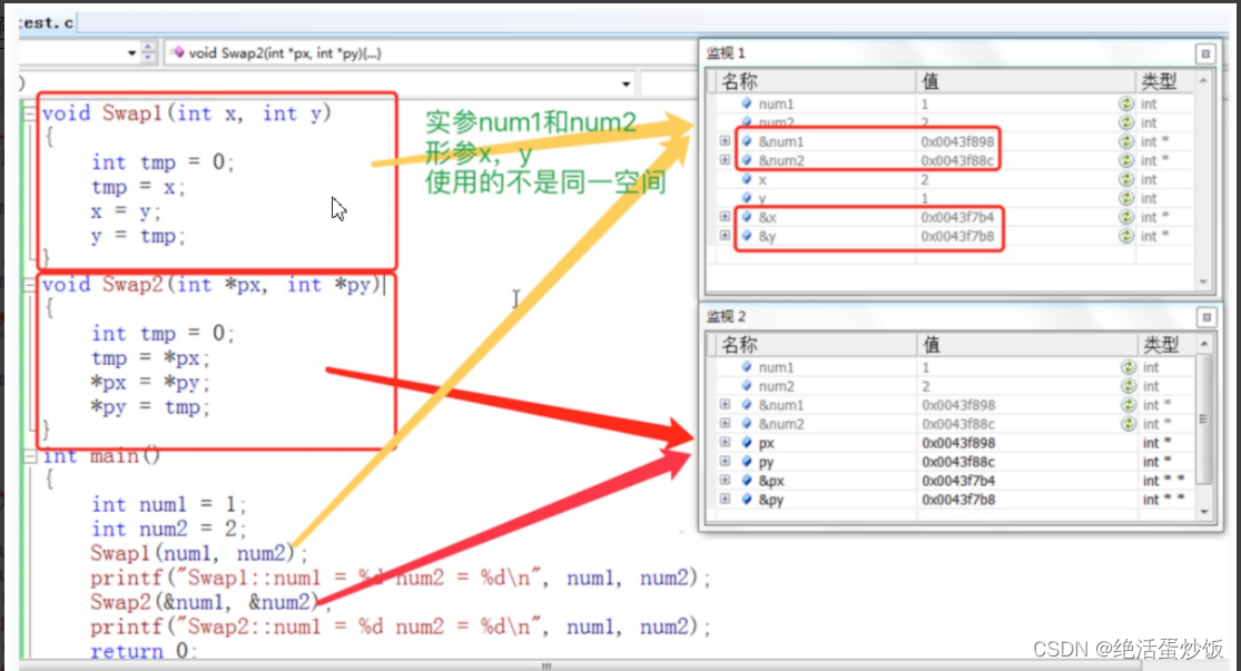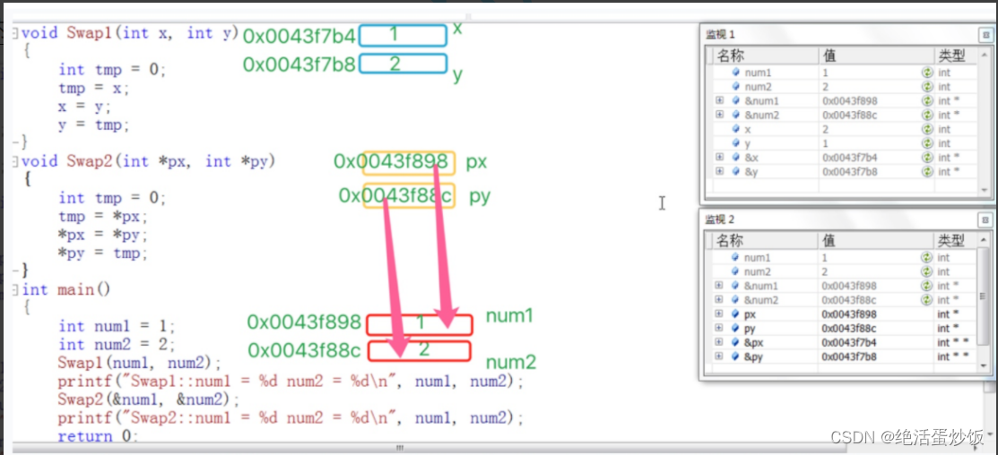 上面 Swap1 和 Swap2 函数中的参数
