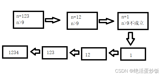 }利用洋葱的思想来看这个代码,就是n的每一位都是一层洋葱,每调用一次函数就会剥掉一层。