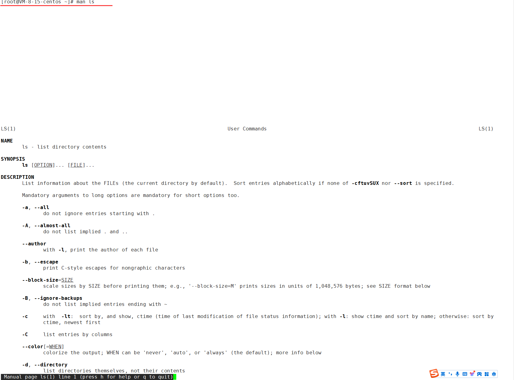 语法 : ls [ 选项 ][ 目录或文件 ]