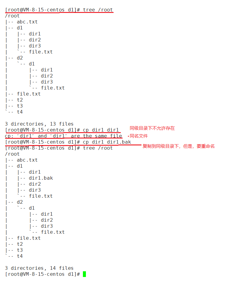如上图,每一个文件都会有 . 和 .. 的隐藏文件,如果,把全部隐藏文件复制过去了,就会造成文件名冲突。