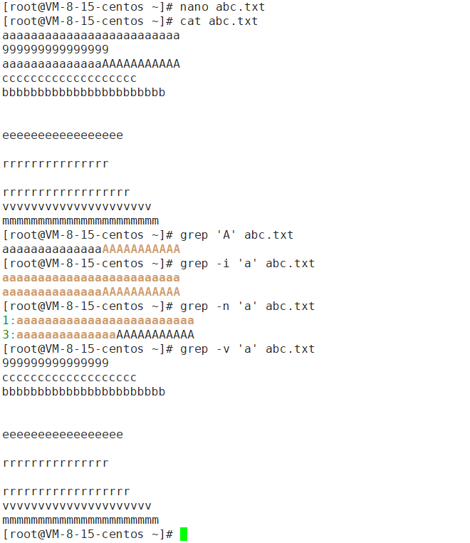 常用选项: -i :忽略大小写的不同,所以大小写视为相同 -n :顺便输出行号 -v :反向选择,亦即显示出没有 ' 搜寻字符串 ' 内容的那一行