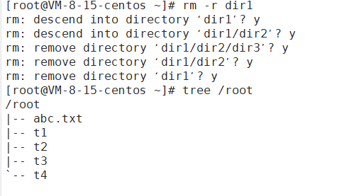 因为我当前用的是root 账号,所以删除的时候会比较谨慎,会一次次询问 。