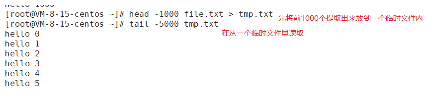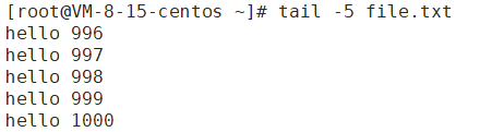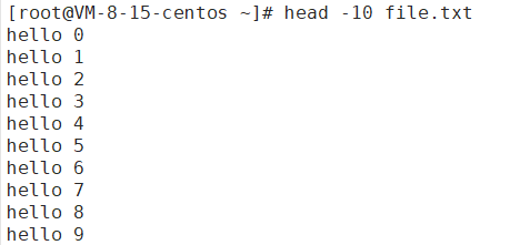 为了演示先用这条语句,向file.txt文件内写入1000行 i=0; while [ i -le 1000 ]; do echo "hello