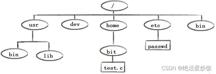 Linux系统中,磁盘上的文件和目录被组成一棵目录树,每个节点都是目录或文件。