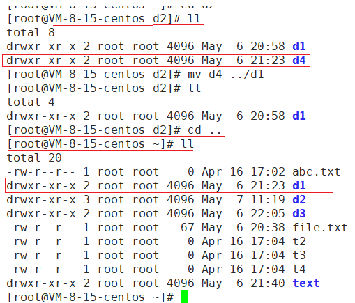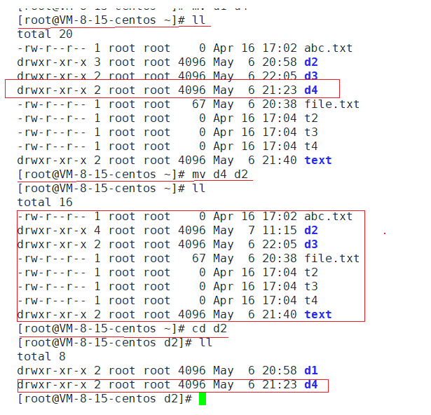 cd .. : 返回上级目录(回退操作) cd /home/litao/linux/ : 绝对路径(在配置文件当中比较常见) cd ../day02/ : 相对路径(在命令行中找文件比较常见) cd ~:进入用户家目 cd -:返回最近访问目录(跳转回最近一次所处的目录)