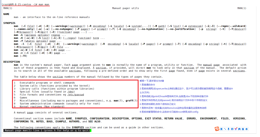功能:Linux 的命令有很多参数,我们不可能全记住,我们可以通过查看联机手册获取帮助。访问 Linux 手册页的命令是 man(但是,市面上的搜索引擎也非常常见,所以还是市面上的搜索引擎比较好用)