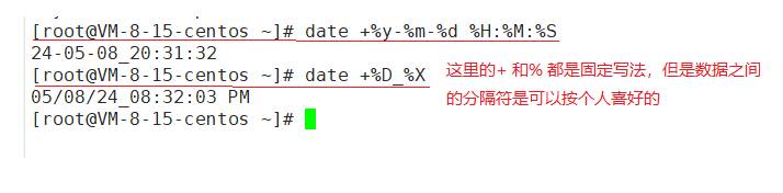 %H : 小时 (00..23) %M : 分钟 (00..59) %S : 秒 (00..61) %X : 相当于 %H:%M:%S %d : 日 (01..31) %m : 月份 (01..12) %Y : 完整年份 (0000..9999) %F : 相当于 %Y-%m-%d