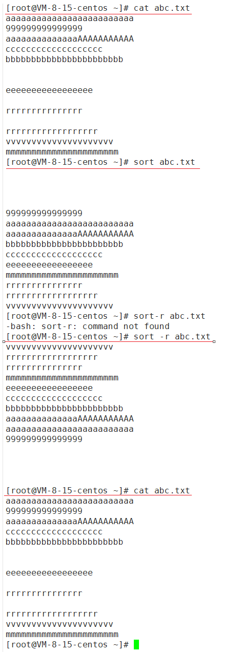 功能:按照首字母ASCII码值来排序,把结果打印出来,但不会改变文件