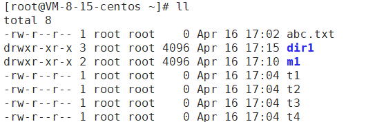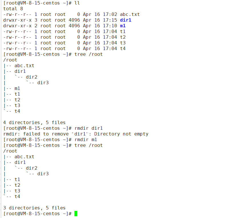 标蓝的说明是目录 dir1 不是空目录所以删不掉 m1 是空目录所以就直接删除了