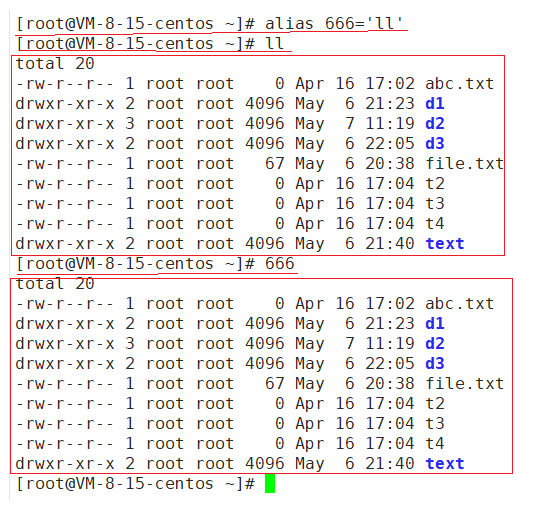 功能:为指令取别名(一旦关闭xshell,那么别名也就消失了)
