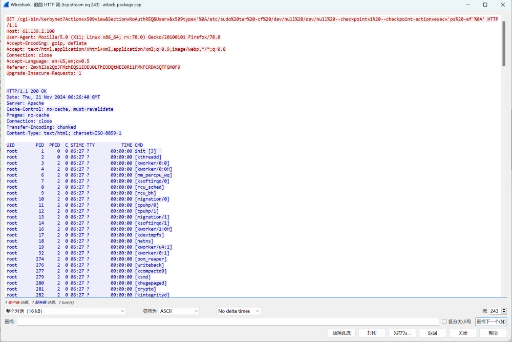 wireshark语法过滤找到对应的http流分析payload