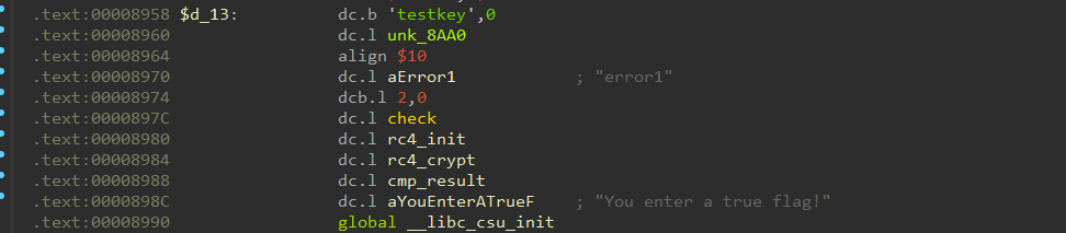 同第三题分析,ida中IP下面有一串可疑字符串