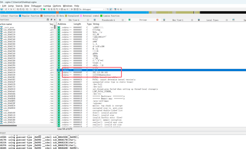 c6045425-6e6e-41d0-be09-95682a4f65c4注意到tmp目录下有个隐藏文件.nginx很可疑,因此对其分析,导出到本地然后ida反编译